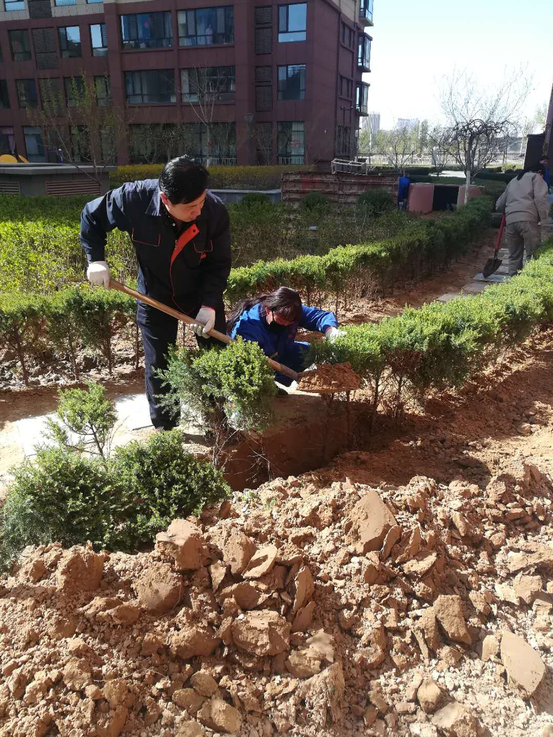 此次活動物業全員配合,分工明確,大家個個態度積極、熱情高漲,興致勃勃。在活動現場,大家有的扶苗,有的培土,各個環節銜接有序,配合默契,真正是勁往一處使、汗往一處流,充分發揚了團結、互助、友愛的精神。
